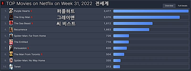 넷플릭스 전세계 2022년 31주차 영화 부문 TOP 10 ⓒOTT뉴스
