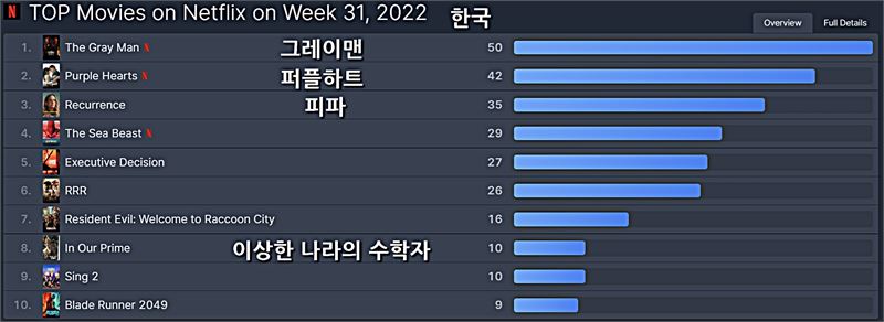 넷플릭스 한국 2022년 31주차 영화 부문 TOP 10 ⓒOTT뉴스