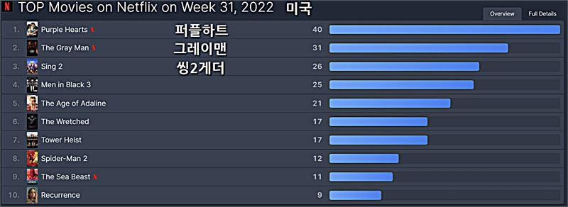 넷플릭스 미국 2022년 31주차 영화 부문 TOP 10 ⓒOTT뉴스