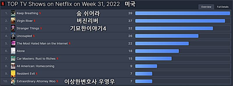넷플릭스 [미국] 2022년 31주차 영화/TV 부문 TOP 10