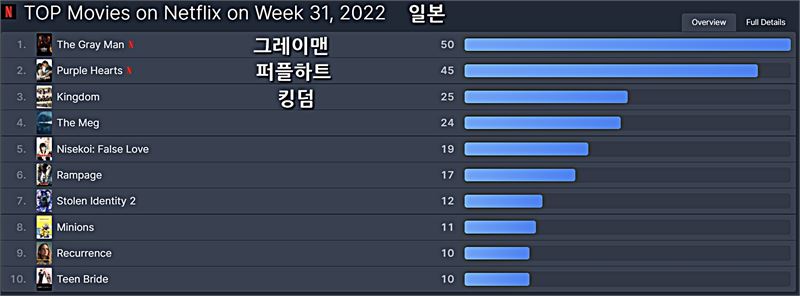 넷플릭스 일본 2022년 31주차 영화 부문 TOP 10 ⓒOTT뉴스