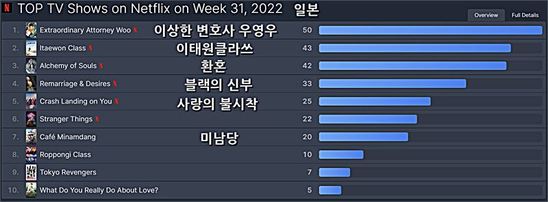 넷플릭스 [일본] 2022년 31주차 영화/TV 부문 TOP 10