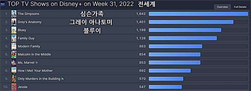 디즈니플러스 전세계 2022년 31주차 TV 부문 TOP 10 ⓒOTT뉴스
