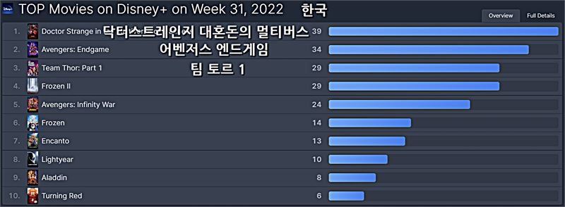디즈니플러스 [한국] 2022년 31주차 영화/TV 부문 TOP 10
