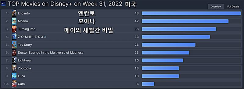 디즈니플러스 미국 2022년 31주차 영화 부문 TOP 10 ⓒOTT뉴스
