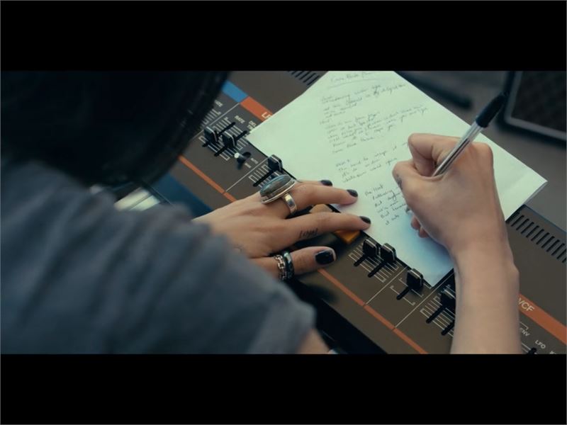 가사를 적는 캐시,넷플릭스 <퍼플 하트> (사진=넷플릭스 공식 예고편).ⓒOTT뉴스