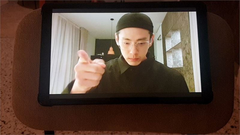 1인 2역의 인터뷰 영상을 준비하는 유태오, 넷플릭스 <로그 인 벨지움>(사진=다음영화).ⓒOTT뉴스