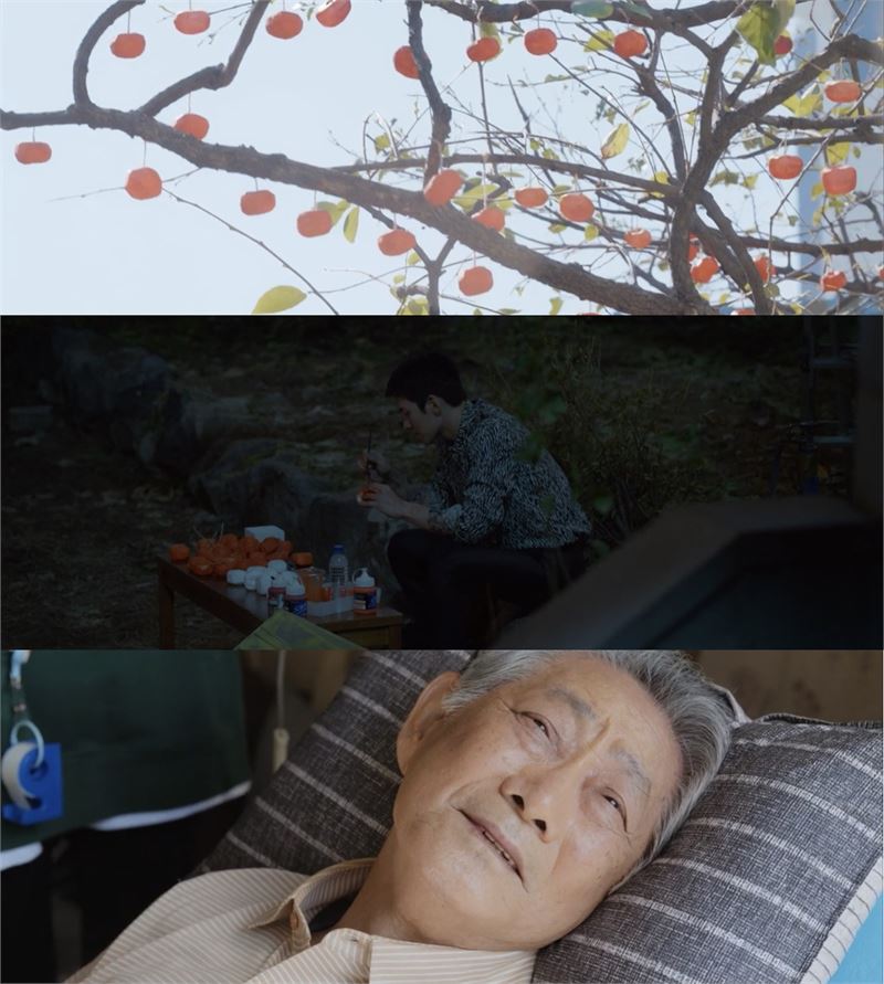 윤겨레는 마지막을 앞둔 호스피스 환자를 위해 밤새 스티로폼 감을 나무에 달아둔다(사진=웨이브 캡처). ⓒOTT뉴스