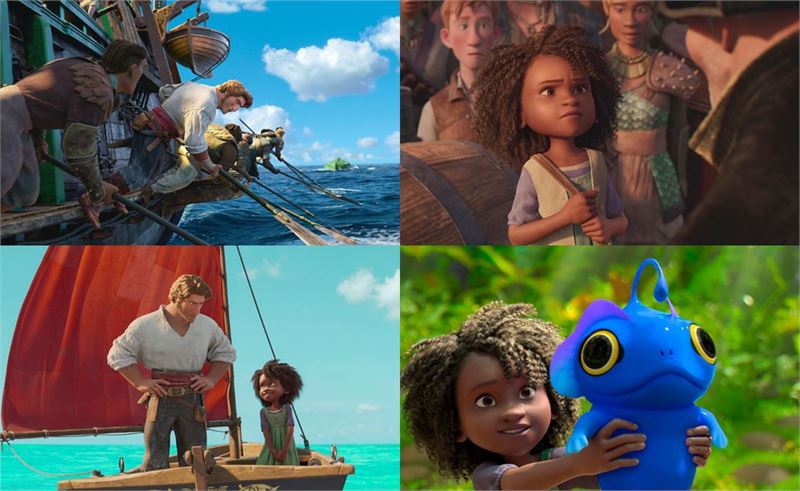 '영화 '씨비스트'에서 흑인소녀 메이지는 보육원에서 나와 바다괴물을 사냥하는 모험에 함께하고, 괴물들과 우정을 쌓아간다(사진=넷플릭스). ⓒOTT뉴스'