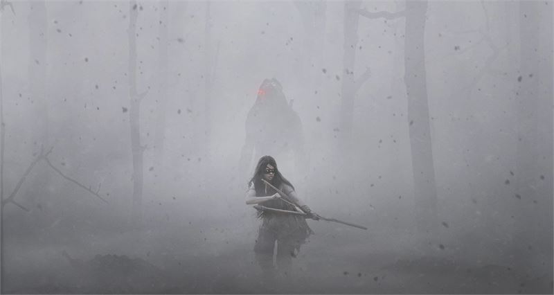 프레데터와 대치하는 나루의 모습을 담은 스틸컷(사진=IMDB). ⓒOTT뉴스