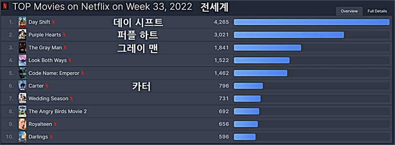 넷플릭스 [전세계] 2022년 33주차 영화/TV 부문 TOP 10