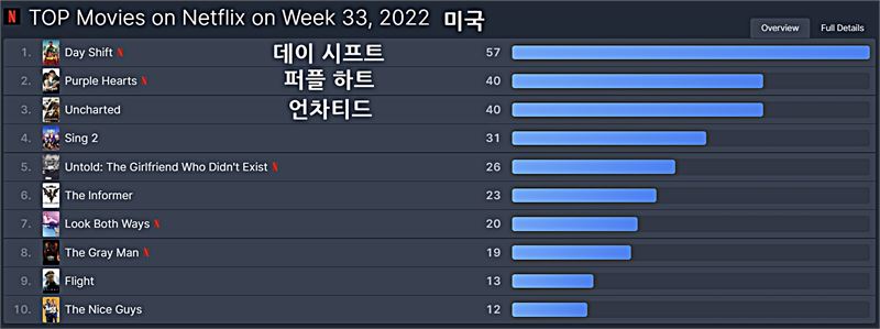 넷플릭스 미국 2022년 33주차 영화 부문 TOP 10 ⓒOTT뉴스
