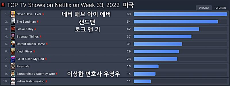 넷플릭스 [미국] 2022년 33주차 영화/TV 부문 TOP 10