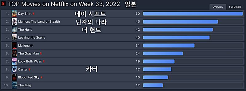 넷플릭스 일본 2022년 33주차 영화 부문 TOP 10 ⓒOTT뉴스