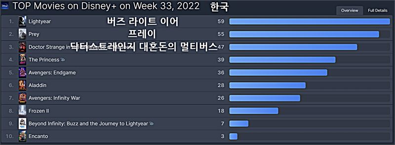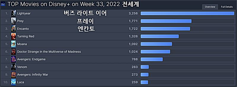디즈니플러스 전세계 2022년 33주차 영화 부문 TOP 10 ⓒOTT뉴스