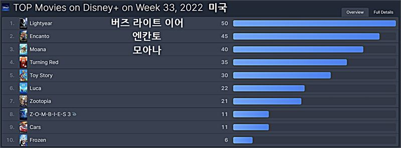 디즈니플러스 미국 2022년 33주차 영화 부문 TOP 10 ⓒOTT뉴스