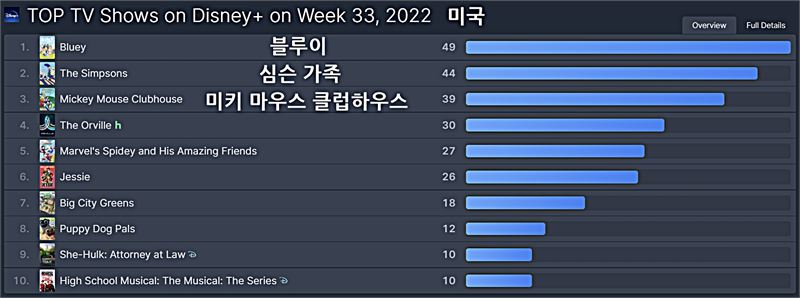 디즈니플러스 미국 2022년 33주차 TV 부문 TOP 10 ⓒOTT뉴스