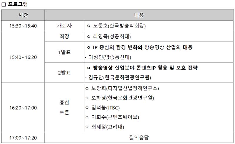 한국방송학회, '방송 콘텐츠IP 전략의 진화: 진단, 전망, 제언' 세미나 일정 ⓒOTT뉴스