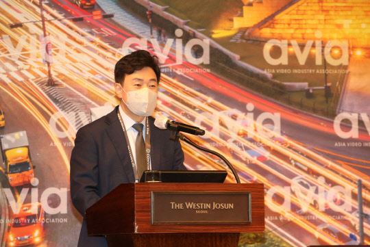 AVIA 주최 국제컨퍼런스에서 기조연설 중인 안형환 부위원장(사진=방송통신위원회). ⓒOTT뉴스