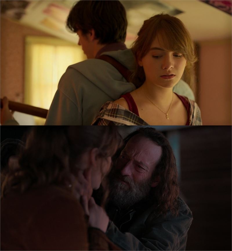 배에 타고 있으면 그 큰 뱃고동 소리가 들리지 않아도 출렁거리는 움직임만은 느껴지는 것처럼, 루비와 마일스(퍼디아 월시-필로)가 어색함 속에서 등을 기대고 서로의 진동을 느끼며 노래를 부른 것처럼, 루비의 아빠 프랭크(트로이 코처)도 루비의 목에 손을 가져다 대 그녀의 울림을 받아들인다.