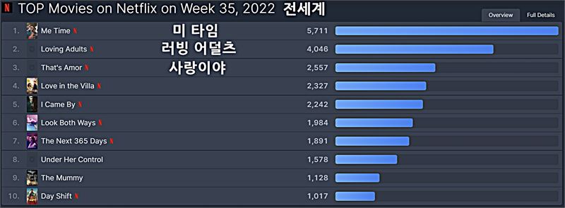 넷플릭스 [전세계] 2022년 35주차 영화/TV 부문 TOP 10
