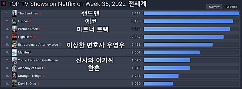 넷플릭스 전세계 2022년 35주차 TV 부문 TOP 10 ⓒOTT뉴스