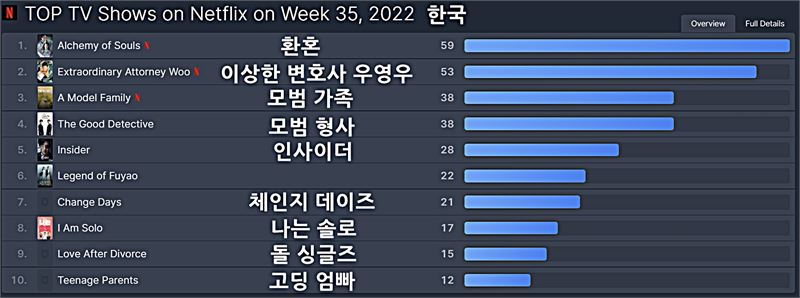 넷플릭스 한국 2022년 35주차 TV 부문 TOP 10 ⓒOTT뉴스