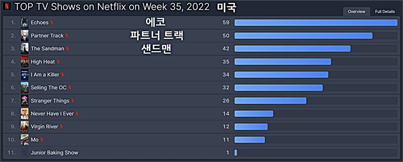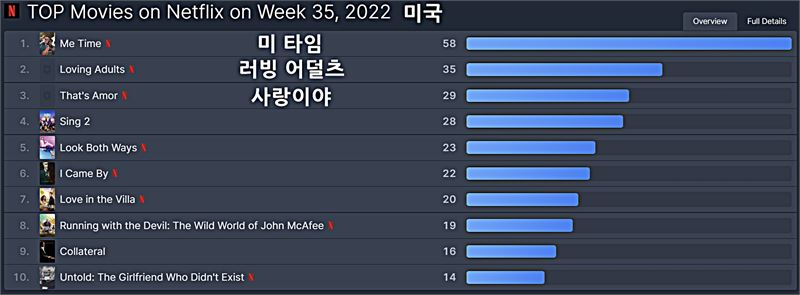 넷플릭스 [미국] 2022년 35주차 영화/TV 부문 TOP 10