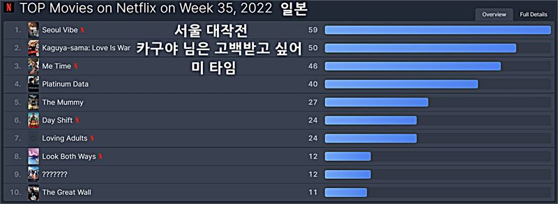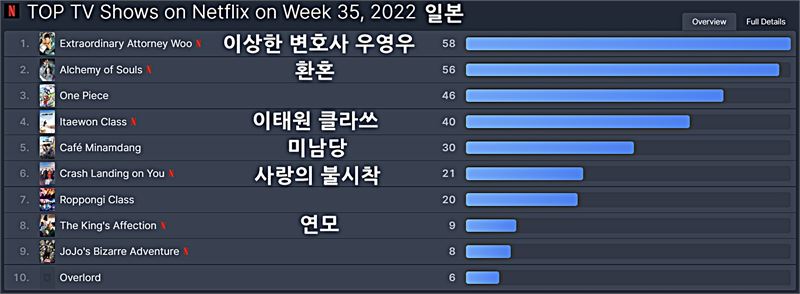 넷플릭스 [일본] 2022년 35주차 영화/TV 부문 TOP 10