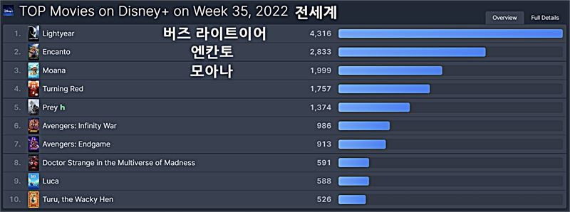 디즈니플러스 전세계 2022년 35주차 영화 부문 TOP 10 ⓒOTT뉴스
