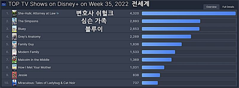 디즈니플러스 전세계 2022년 35주차 TV 부문 TOP 10 ⓒOTT뉴스