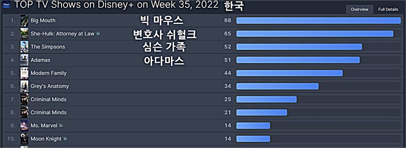 디즈니플러스 [한국] 2022년 35주차 영화/TV 부문 TOP 10
