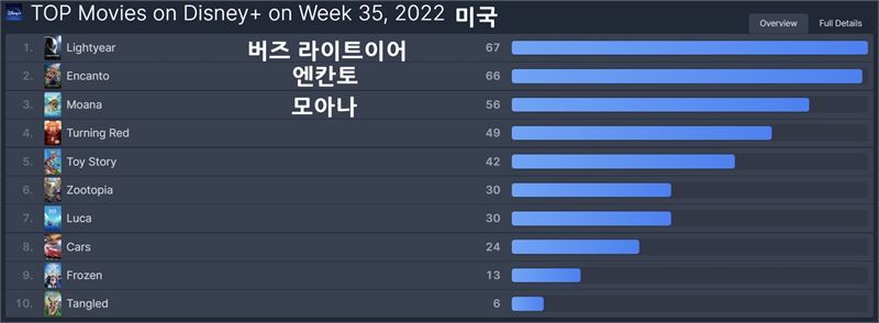 디즈니플러스 미국 2022년 35주차 영화 부문 TOP 10 ⓒOTT뉴스
