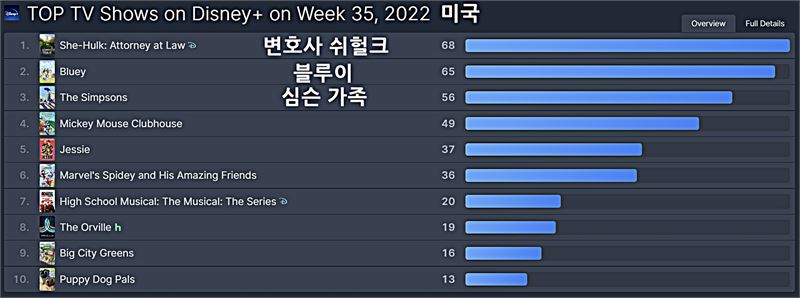 디즈니플러스 미국 2022년 35주차 TV 부문 TOP 10 ⓒOTT뉴스