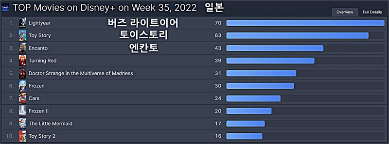 디즈니플러스 일본 2022년 35주차 영화 부문 TOP 10 ⓒOTT뉴스