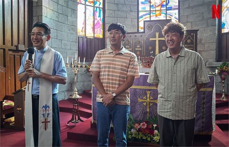 현지 교회에 찾아간 인구와 응수(사진=IMDB). ⓒOTT뉴스