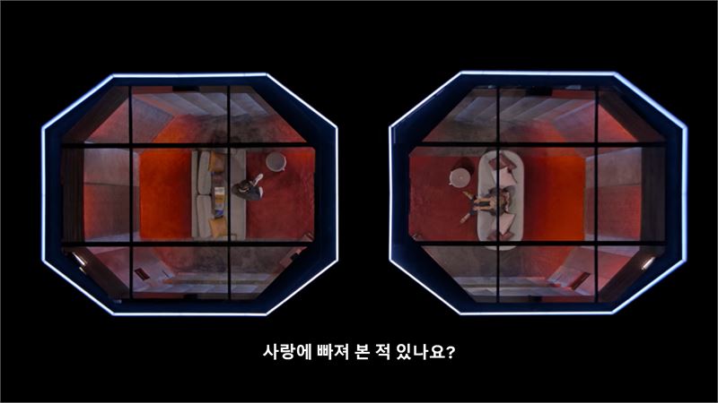 벽을 두고 대화할 수 있는 포드 내부 모습(사진='블라인드 러브2' 공식 예고편). ⓒOTT뉴스