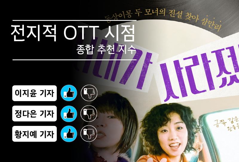 OTT뉴스의 기자 셋이 OTT 전문지 기자 시점으로 신작을 두고 솔직한 의견을 가감 없이 풀어놓는 코너입니다. 이번 주에는 왓챠에서 시청 가능한 영화 '윤시내가 사라졌다'를 보고 대화를 나눴습니다.