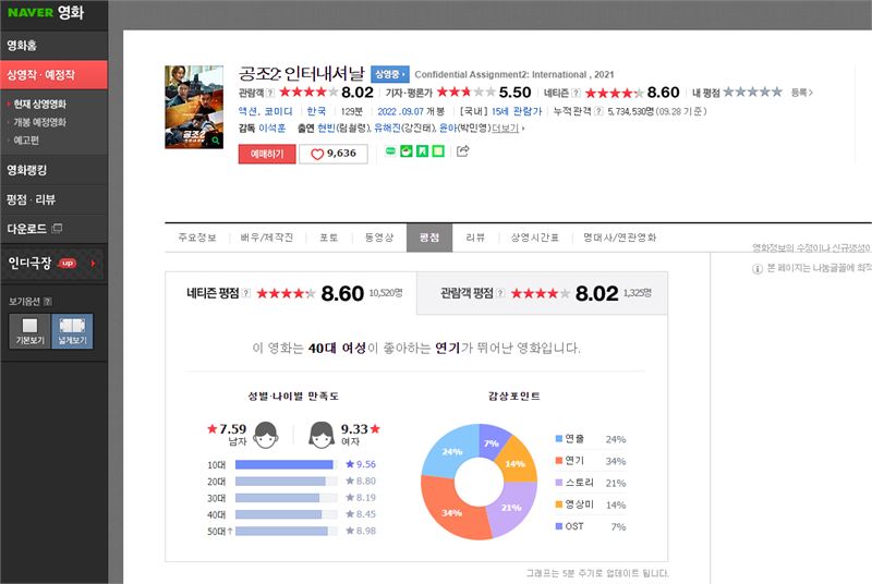 영화 '공조2: 인터내셔날'의 네이버 영화 평점란(사진=홈페이지캡쳐). ⓒOTT뉴스