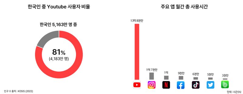 유튜브 9월 사용자가 대한민국 인구의 81%에 달하는 것으로 조사됐다.