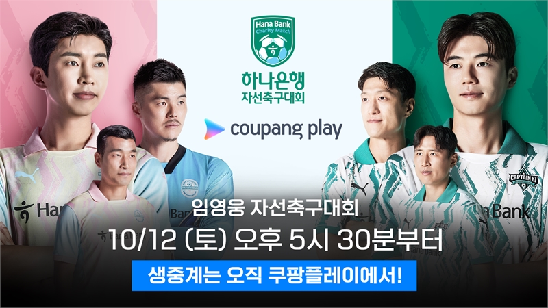 ‘독보적인 슈퍼스타’ 임영웅과 ‘대한민국 축구 레전드’ 기성용이 그라운드에서 맞대결을 펼친다. 쿠팡플레이는 12일(토) 오후 5시 30분 대전월드컵경기장에서 열리는 ‘하나은행 자선축구대회’를 생중계하며, 경기 1시간 30분 전에는 ‘프리뷰쇼’를 통해 인터뷰와 관전 포인트를 소개할 예정이다.